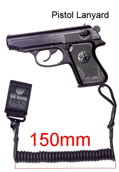 Pistol lanyard, Rubber coated, inner part is made of Nylon cloth, Length: Flexible part length 15cm relaxed, >40 cm stretched,